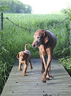 Der nächste Weg führte zur JAGD & HUND nach Dortmund , dort lernte ich die "roten Ungarn" kennen. Begeistert wurde Kontakt zu einem Züchter aufgenommen und ein Besuch vereinbart. Ein paar herrliche Stunden mit dessem ungarischen Rudel und die Entscheidung war gefallen - ein Vizsla sollte bei uns einziehen. Das war Ende 1996 .... der Start des Unternehmens "Schröder" .